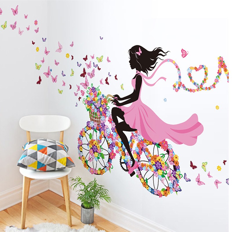 Diy Wall Sticker Kids Room Decoration Butterfly Princess Bike Girl Art Decal Home Mural
