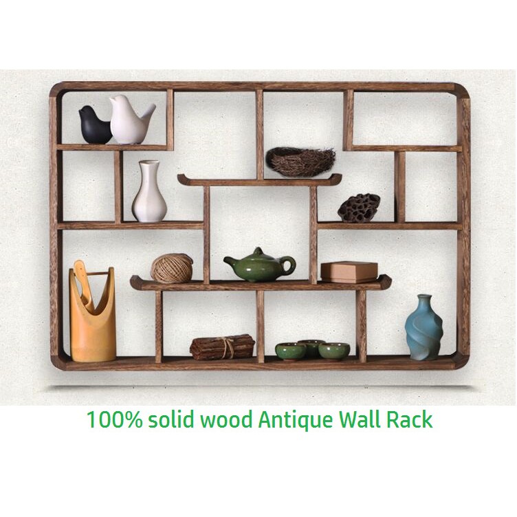 Solid Wood Antique Wall Mounted Shelves Diy Wooden Wall Hanging Floating Rack